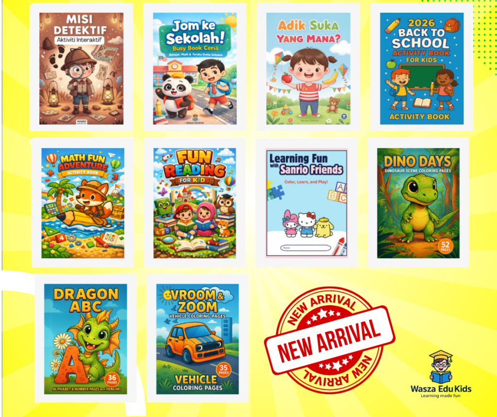Koleksi ini merangkumi pelbagai activity book, worksheet dan bahan pembelajaran kanak-kanak yang direka khas untuk membantu perkembangan awal kanak-kanak secara menyeronokkan.